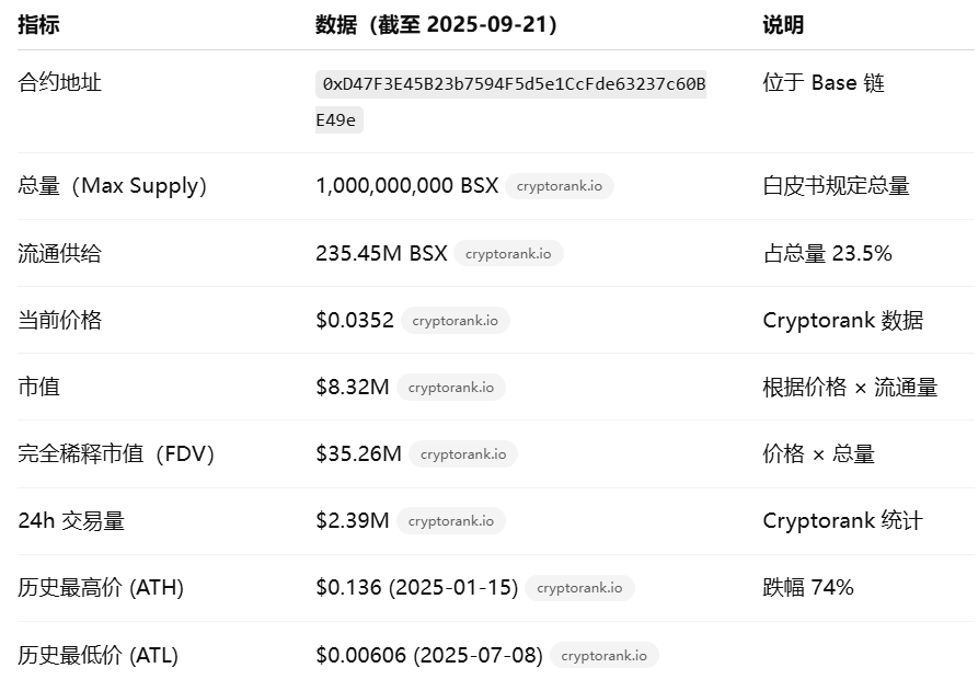 市场风险:加密衍生品价格波动剧烈,高杠杆产品易引发强制平仓和损失。BSX Token 历史上短期暴跌过 95%cryptorank.io。