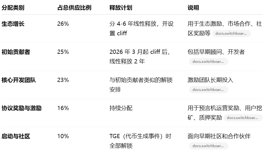 解锁抛压:未来 4‑6 年大量代币解锁,市场需消化团队和投资者份额。docs.switchboard.foundation。